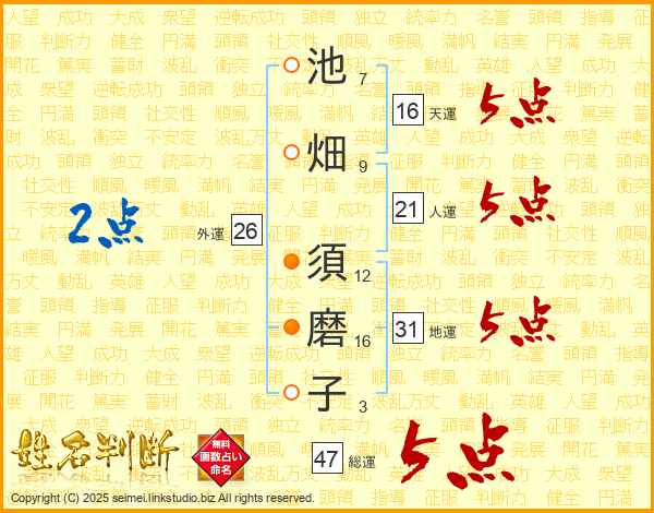 池畑須磨子さんの総運は47画の5点!