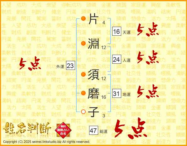 片淵須磨子さんの総運は47画の5点!