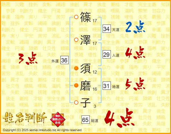 篠澤須磨子さんの総運は65画の4点!