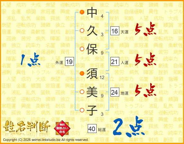中久保須美子さんの人運は21画の5点!