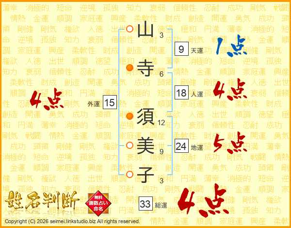 山寺須美子さんの総運は33画の4点!