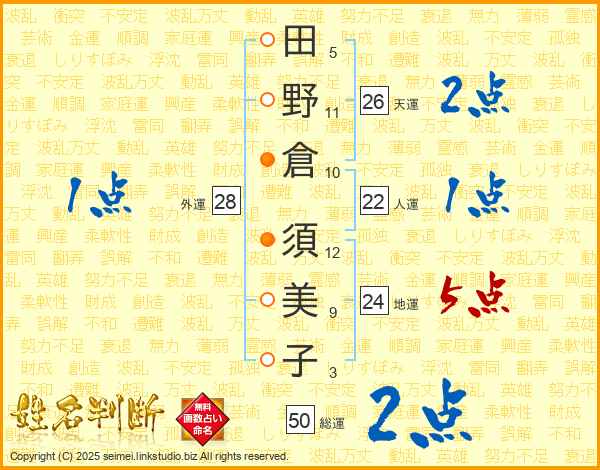 田野倉須美子さんの地運は24画の5点!
