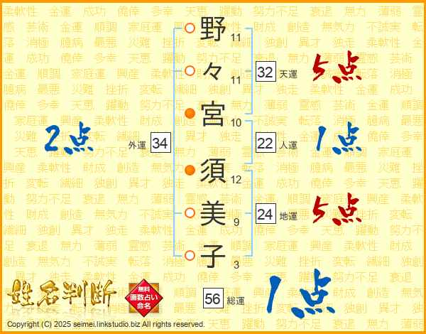 野々宮須美子さんの総運は56画の1点!