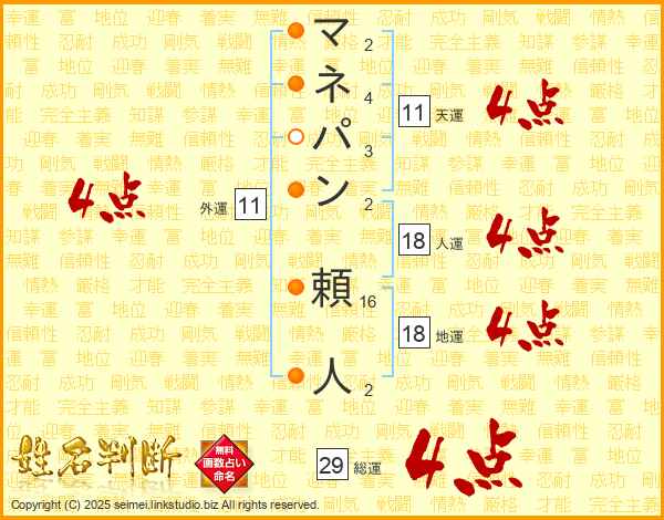 マ(2画)ネ(4画)パ(3画)ン(2画) 頼(16画)人(2画)