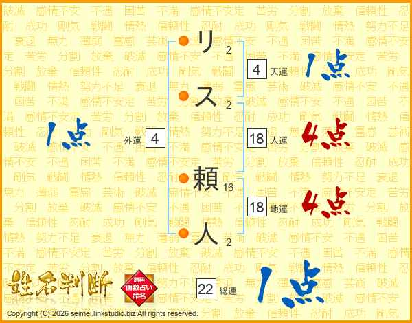 リス頼人さんの人運は18画の4点!