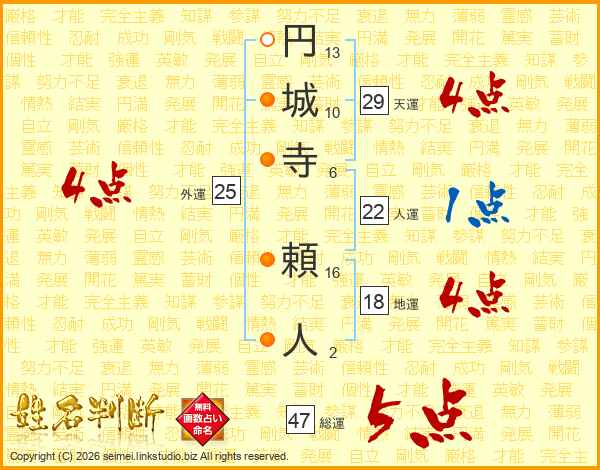 円城寺頼人さんの総運は47画の5点!