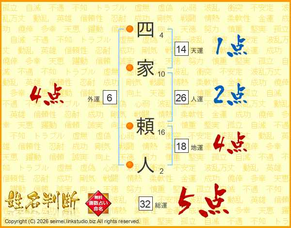 四家頼人さんの総運は32画の5点!