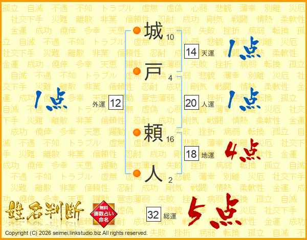 城戸頼人さんの総運は32画の5点!