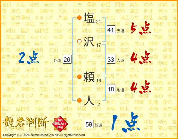 塩沢頼人さんの総運は59画の1点!