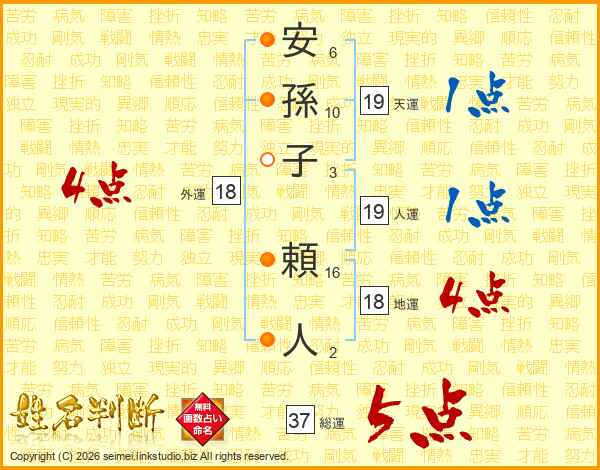 安孫子頼人さんの総運は37画の5点!