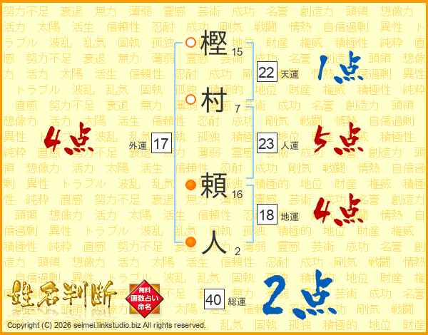 樫村頼人さんの総運は40画の2点!