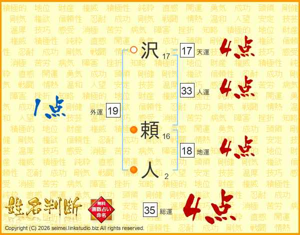 沢頼人さんの人運は33画の4点!