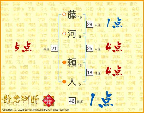 藤河頼人さんの総運は46画の1点!