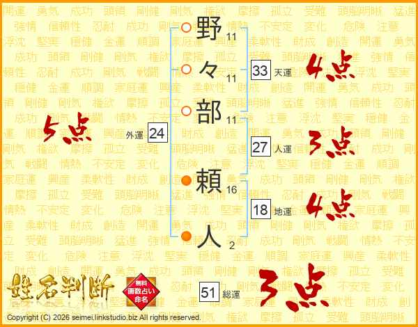 野々部頼人さんの天運は33画の4点!