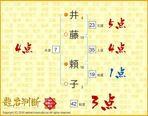 井(4画)藤(19画) 頼(16画)子(3画)