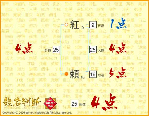 紅頼さんの総運は25画の4点!