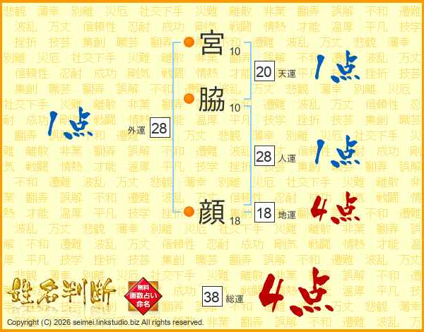 宮脇顔さんの総運は38画の4点!