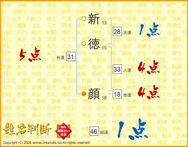 新徳顔さんの総運は46画の1点!