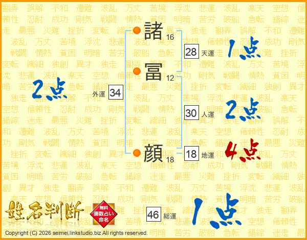 諸冨顔さんの総運は46画の1点!