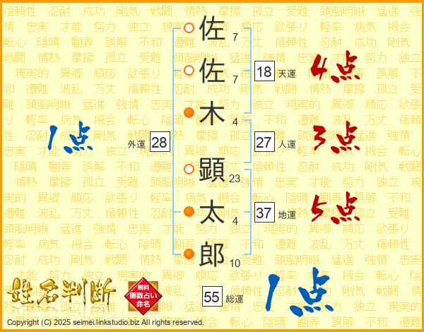 佐(7画)佐(7画)木(4画) 顕(23画)太(4画)郎(10画)