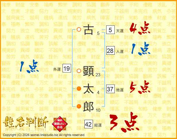 古顕太郎さんの総運は42画の3点!