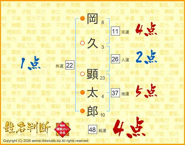 岡久顕太郎さんの人運は26画の2点!