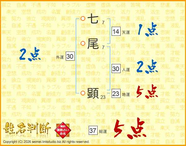 七尾顕さんの総運は37画の5点!