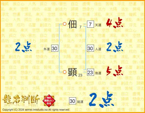 佃顕さんの総運は30画の2点!