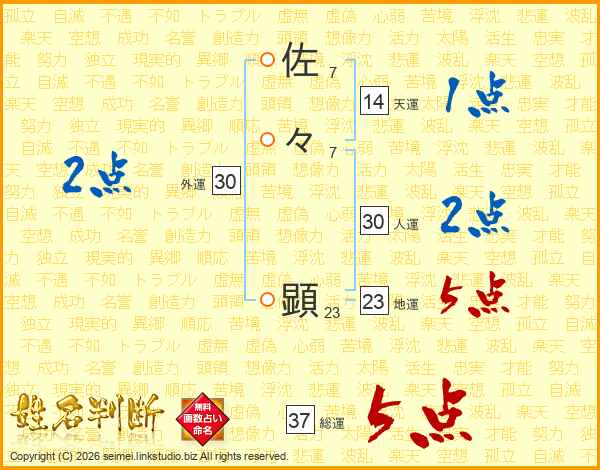 佐々顕さんの総運は37画の5点!