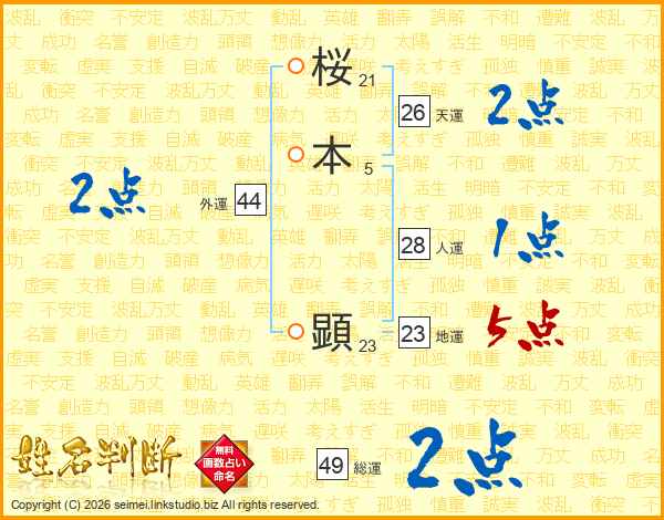 桜本顕さんの天運は26画の2点!