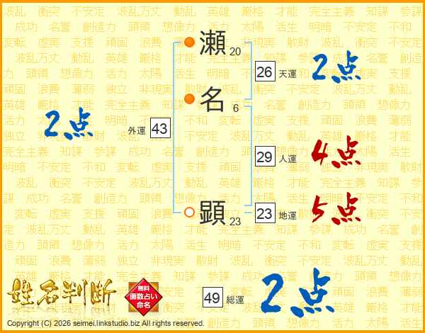 瀬名顕さんの天運は26画の2点!