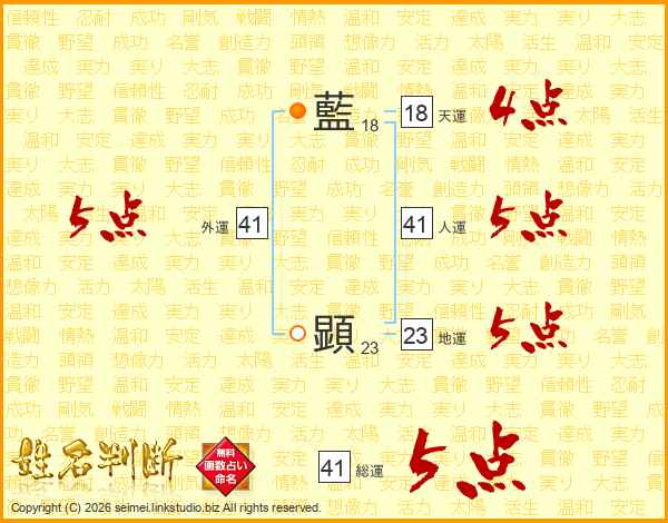 藍顕さんの総運は41画の5点!