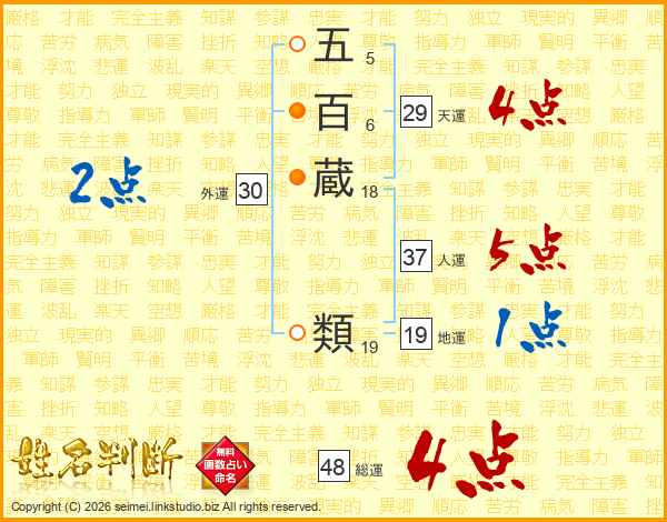 五百蔵類さんの総運は48画の4点!