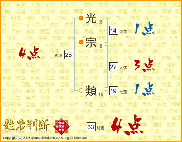 光宗類さんの総運は33画の4点!