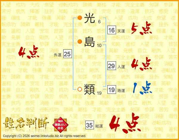 光島類さんの総運は35画の4点!