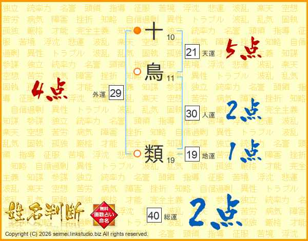 十鳥類さんの総運は40画の2点!