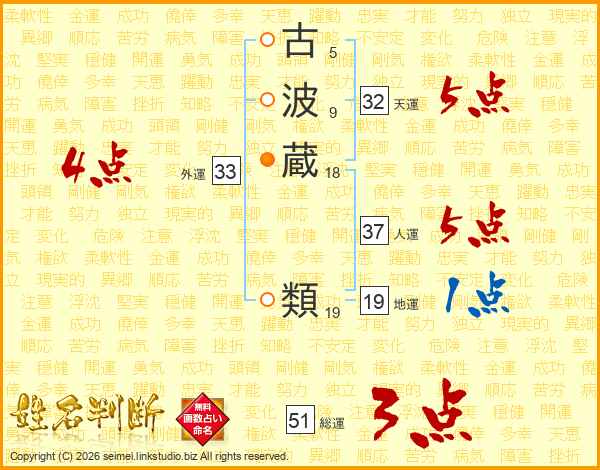 古波蔵類さんの総運は51画の3点!