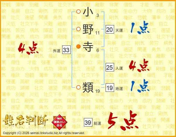 小野寺類さんの外運は33画の4点!