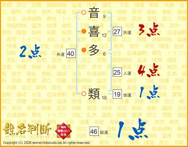 音喜多類さんの総運は46画の1点!