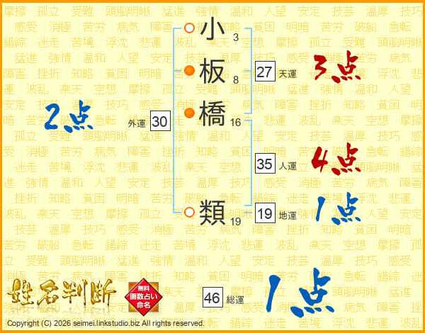小板橋類さんの総運は46画の1点!