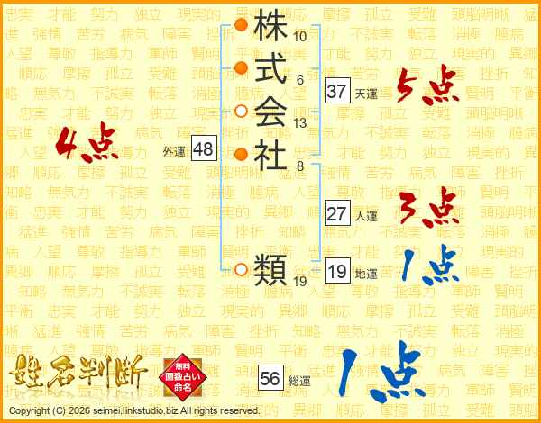 株(10画)式(6画)会(13画)社(8画) 類(19画)