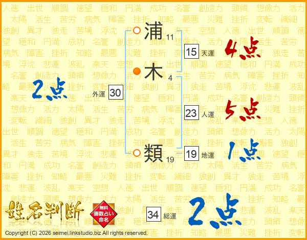 浦木類さんの天運は15画の4点