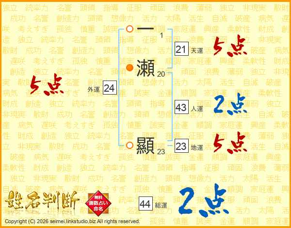 一瀬顯さんの総運は44画の2点!