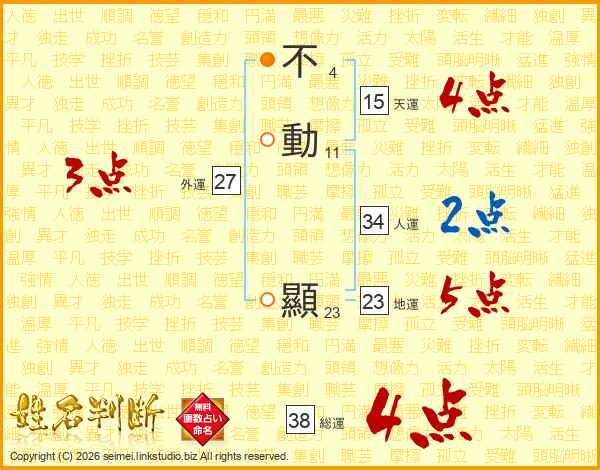 不動顯さんの総運は38画の4点!