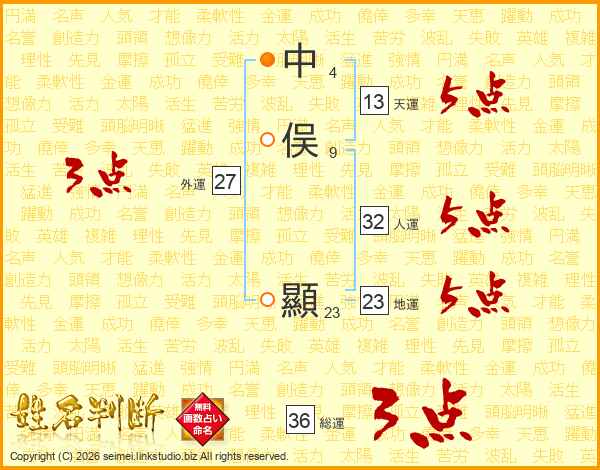 中俣顯さんの天運は13画の5点!