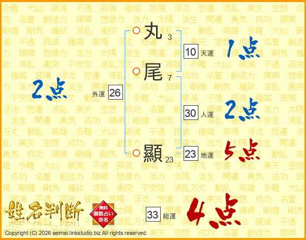 丸尾顯さんの総運は33画の4点!