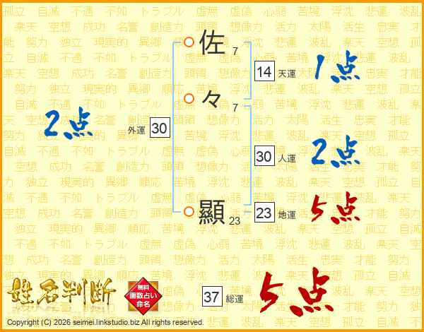 佐々顯さんの総運は37画の5点!
