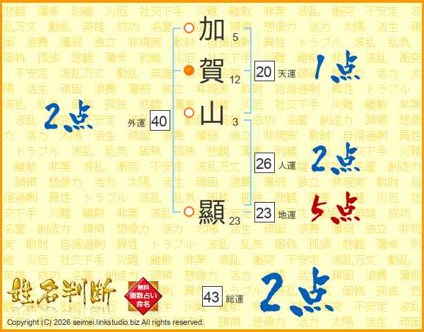 加賀山顯さんの地運は23画の5点!