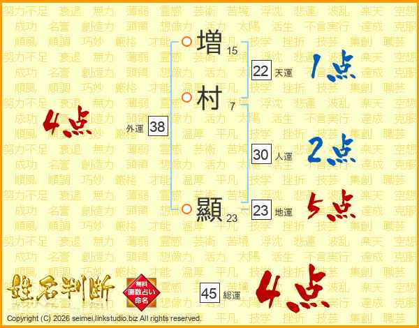 増村顯さんの総運は45画の4点!