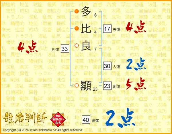 多比良顯さんの天運は17画の4点!